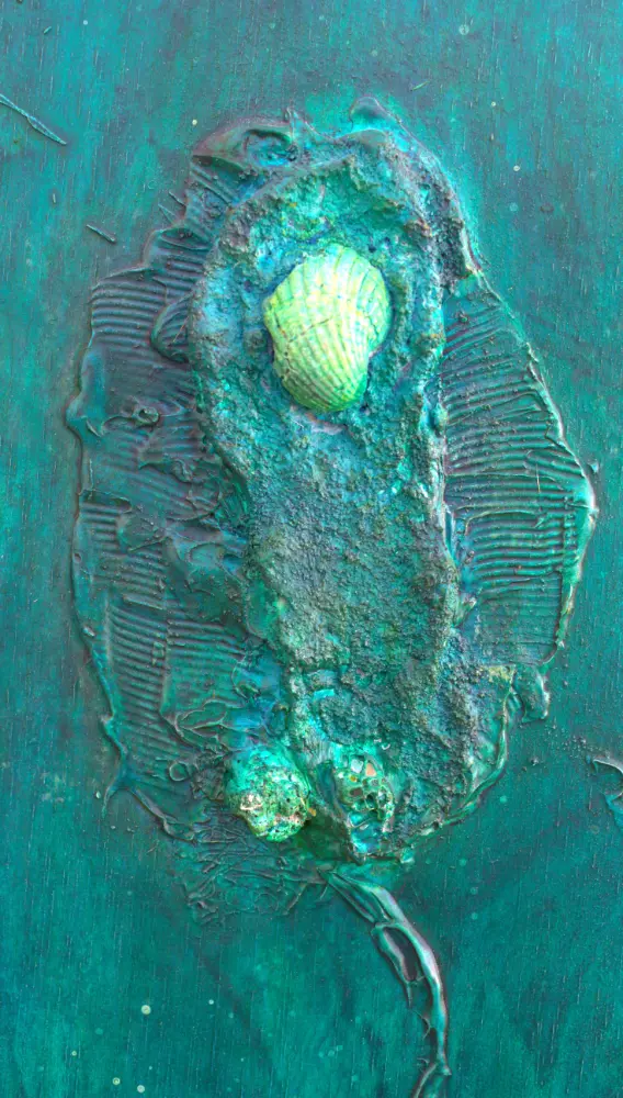 Aqua. 2002. Acrílico y objetos sobre tabla de 130×97 cm.